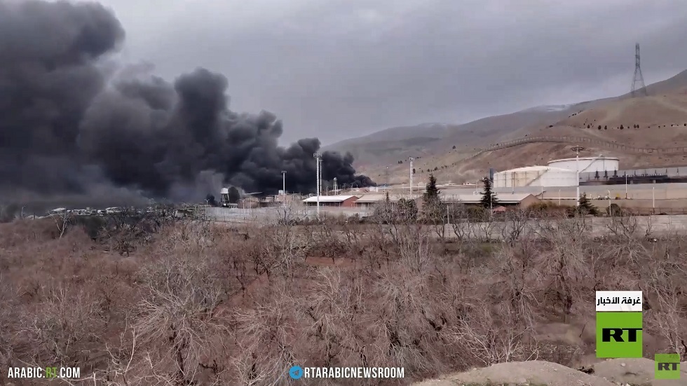 رصدت مراسلة آر تي آثار الانفجار الضخم في منطقة شهران غرب العاصمة طهران، إثر غارات أمريكية‑إسرائيلية استهدفت مخازن الوقود..