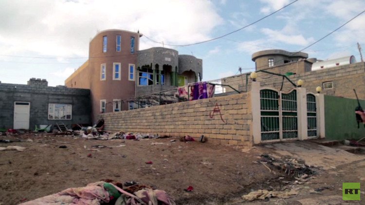 دخلت عدسة RT بيت أمير تنظيم الدولة في خانصور الإيزيدية وأشيائه بقيت على حالها، ففي الطابق السفلي للبيت لاتزال آثار جروح المعارك ماثلة بل ومبعثرة هنا وهناك، نوافذ و جدران البيت بعضها مصبوغة باللونين الأسود والأخضر أما في الخارج فتبدو الملابس مخضبة بالدماء، لتبقى روائح الموت المنبعثة من زوايا القرية العنوان المرعب لما حاق بها.