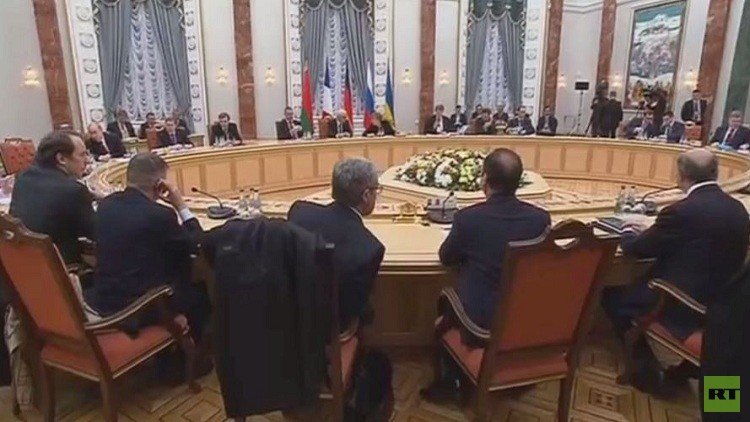 واجتمع زعماء رباعية "النورماندي" لأكثر من 16 ساعة تخللها خروج الرئيس الأوكراني بيترو بوروشينكو مرات عدة لإجراء مكالمات هاتفية، رأى البعض أنها كانت على الأغلب تشاورية مع طرف لم يكن مشاركا في المباحثات.