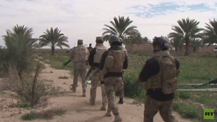 وقتل العشرات من عناصر التنظيم خلال مواجهات مع القوات العراقية تساندها قوات الحشد الشعبي في منطقة سور شناس شمال سامراء.