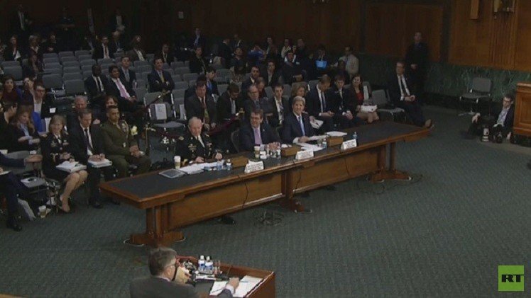 طالب وزيرا الخارجية والدفاع الأمريكيان، "جون كيري" و"آشتون كارتر"، طالبا لجنة الشؤون الخارجية في الكونغرس بدعم طلب الرئيس أوباما تفويضا لمواجهة داعش دون التقيد بالحدود الجغرافية.