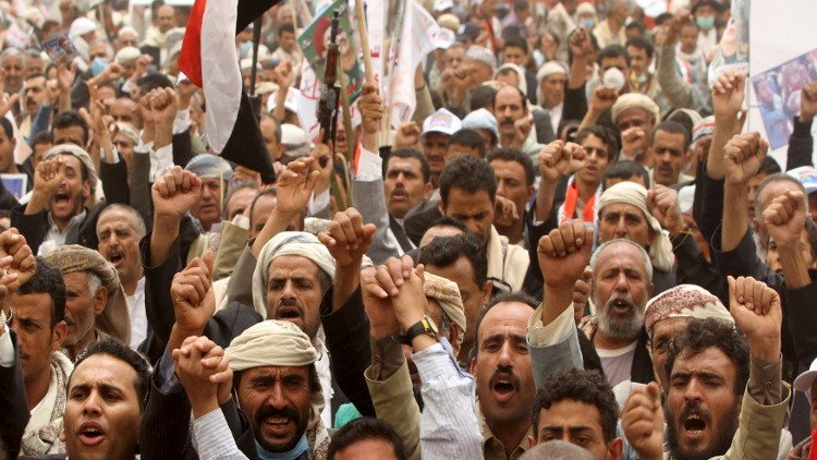 احتشد الآلاف في صنعاء من أنصار حزب المؤتمر الشعبي العام الذي يتزعمه الرئيس اليمني السابق علي عبدالله صالح في تظاهرة حاشدة رفضا لما أسموه التدخل العسكري في اليمن.