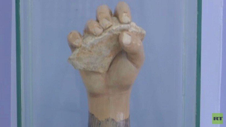 وفي زاوية مقابلة يتلخص الصراع على هوية الأرض بلوحة لعجوز فلسطينية لن تترك يدها الفأس.. كل لوحة حملت اسما فنيا.