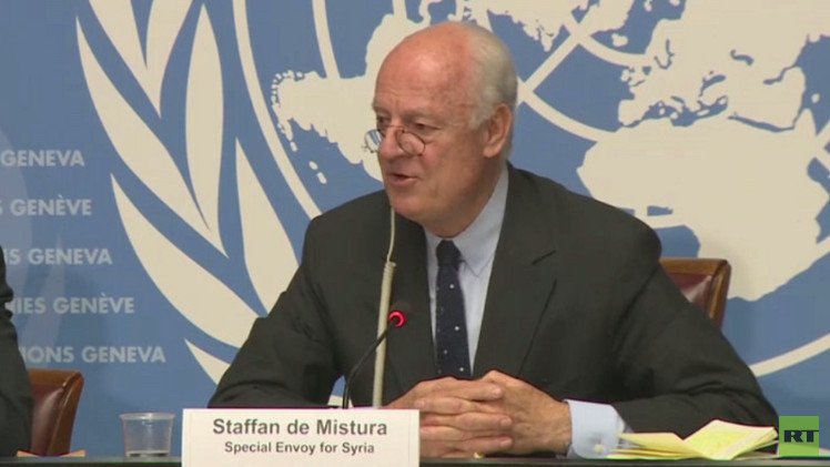 ودعا دي ميستورا في مؤتمر صحفي إلى مضاعفة جهود الحل في سوريا وإعطاء فرصة لوقف العمليات العسكرية.