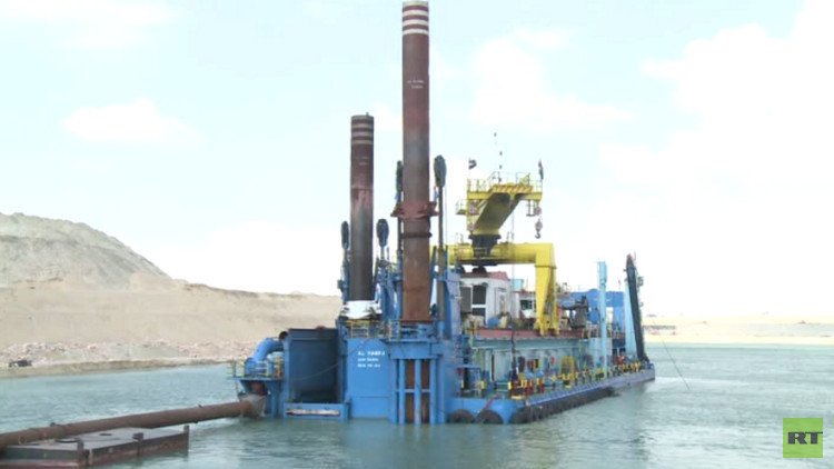 وقد تم الانتهاء من رفع أكثر من مئتي وتسعة عشر مليون متر مكعب من الرمال المشبعة بالمياه من المجرى الملاحي الجديد بنسبة تصل إلى 80% من أجمالي أعمال الحفر وذلك باستخدام آلاف المعدات ، وبمشاركة 84 شركة للمقاولات.