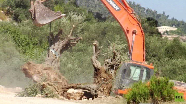 لم يحتمل الجنود الأسرائيليون سماع هتافات الصمود ودعوات دحر الاحتلال فانقضوا على المحتجين بالضرب والاعتقال، هذا المشهد الذي لم يقل عنفا عن مشهد الأشجار المعمرة وهي تلقى على الأرض ، حتى الطفل أدرك معاني انتهاك حرمة الأرض فأجهش بالبكاء.