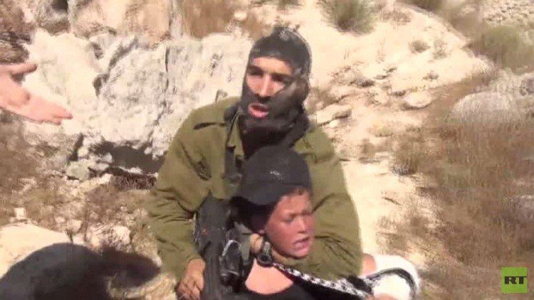 جندي إسرائيلي يعتدي بالضرب على طفل فلسطيني (فيديو)