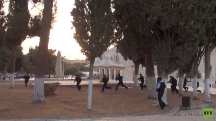فبعد صلاة الفجر بقليل، تلاشت السكينة من باحات الأقصى، بعد اقتحام أعداد كبيرة من القوات الإسرائيلية المدججة بالسلاح وملاحقتها للفلسطينيين الموجودين داخله كما استخدمت القنابل الصوتية والغاز المسيل للدموع.