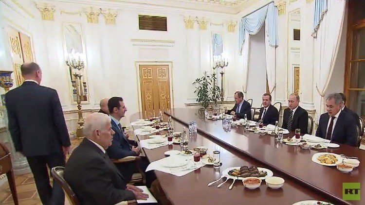 التقى الرئيس الروسي فلاديمير بوتين الرئيس السوري بشار الأسد أمس في موسكو، وخلال لقائهما بالكرملين أكد بوتين للأسد أن تسوية الأزمة يكمن في عملية سياسية بمشاركة جميع الأطراف.