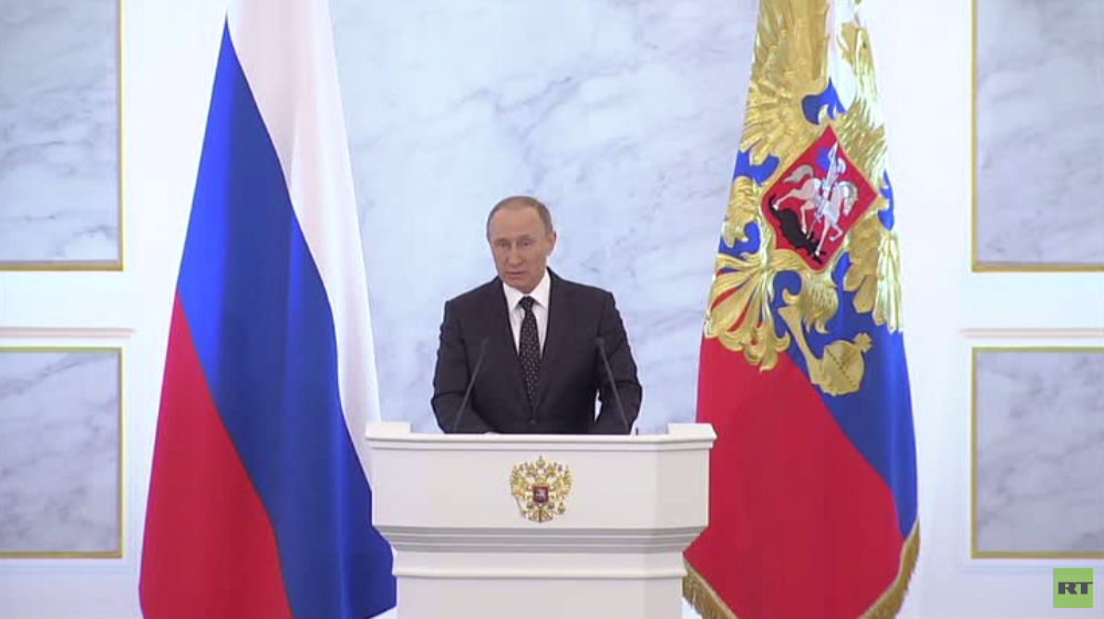 أكد الرئيس الروسي فلاديمير بوتين في رسالته للجمعية الفيدرالية اليوم، أن تركيا ستندم على إسقاط القاذفة الروسية في سوريا، متوعدا بخطوات تتجاوز العقوبات التجارية.