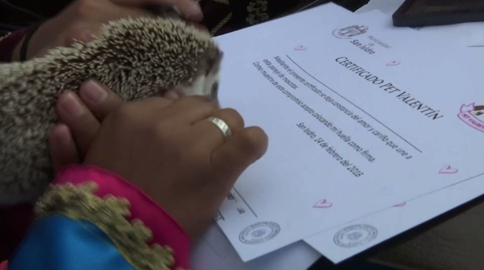في بيرو وفي حدث طريف يهدف الى توعية المواطنين بأهمية رعاية الحيوانات نظم حفل زواج جماعي لمجموعة من الحيوانات أصدر خلاله المنظمون عقودَ زواج رسمية تتضمن بصمات لمخالبها