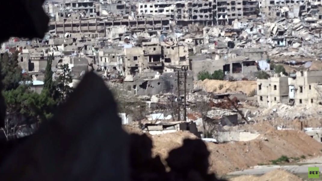 تمكن فريق RT من توثيق طبيعة الوضع الميداني في حي جوبر شرق دمشق كأول وسيلة إعلامية تدخل الحي بعد الشروع بوقف العمليات القتالية.