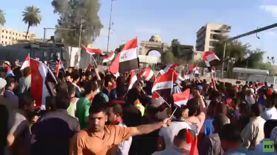 احتشد آلاف العراقيين أمام بوابات المنطقة الخضراء وسط بغداد تلبية لدعوة التيار الصدري للاعتصام ضد الفساد والمطالبة بالاصلاح .