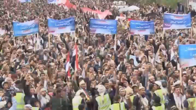 شهدت صنعاء تظاهرة دعت إليها جماعة الحوثي للمطالبة بإيقاف الحرب التي تدور في اليمن منذ أكثر من عام،يأتي ذلك في الوقت الذي عادت فيه المواجهات إلى منطقة نهم شمال صنعاء.