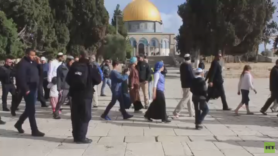 اقتحم عشرات المستوطنين باحات المسجد الأقصى بحراسة القوات الإسرائيلية احتفالا بعيد الفصح اليهودي واشتبكوا مع فلسطينيين داخل باحاته.