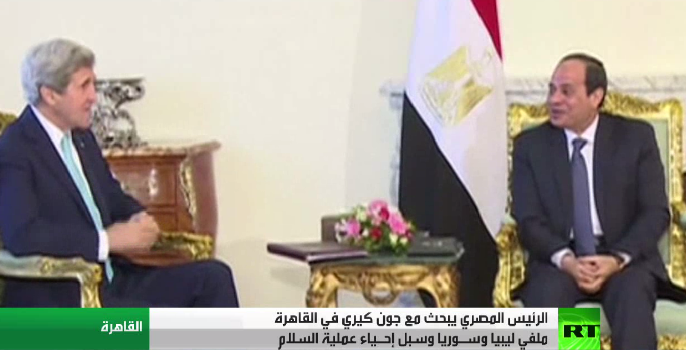 بحث الرئيس المصري عبد الفتاح السيسي في القاهرة مع وزير الخارجية الامريكي جون كيري ملفات الأزمات في عدد من دول المنطقة بالاضافة إالى سبل دفع عملية السلام .