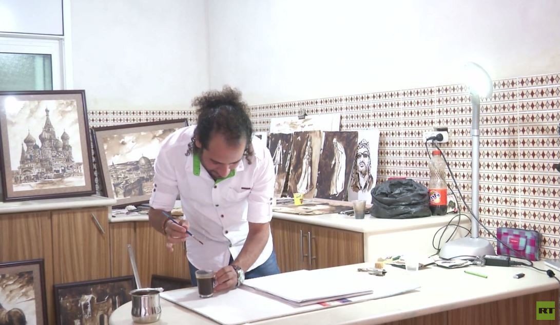 يزن غريب فنان تشكيلي فلسطيني برع باستخدام القهوة، بدلا عن الألوان الزيتية والمائية وريش الرسم والأقلام. ويستمد غريب موضوعات لوحاته من التراث والموروث الثقافي في فلسطين.