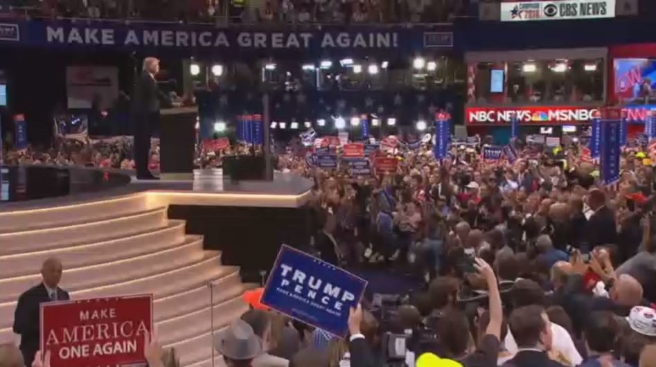 مشيرا إلى أن سياسة منافسته الديموقراطية ووزيرة الخارجية السابقة هيلاري كلينتون لم تخلف سوى الموت والدمار والإرهاب. كما تعهد ترامب بالتخلي عن سياسة بناء الأمم وتغيير الأنظمة.