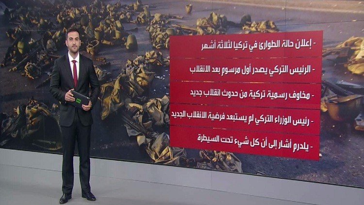 فرضت السلطات التركية إجراءات أمنية جديدة بموجب قانون الطوارئ، تقضي بتمديد فترة إيقاف المشتبه بارتباطهم بمحاولة الانقلاب دون توجيه تهم إليهم إضافة إلى إغلاق أكثر من ألفي مؤسسة جديدة