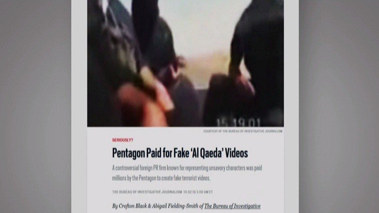 نشرت صحيفة الصنداي تايمز تحقيقا بشأن صفقة بين البنتاغون مع شركة بيل بوتينغر للعلاقات العامة بقيمة نصف مليار دولار لتلفيق فيديوهات حول تنظيم القاعدة بهدف شرعنة الغزو على للعراق.