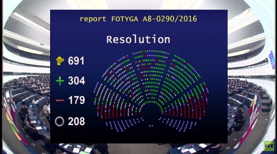 القرار الذي تبناه الاتحاد الأوروبي حول مواجهة الاعلام الروسي اعتبر شبكةَ آرتي ووكالةَ سبوتنيك بأنهما أحد التهديدات الإعلامية الأساسية على الاتحاد الأوروبي وشركائه في شرق أوروبا