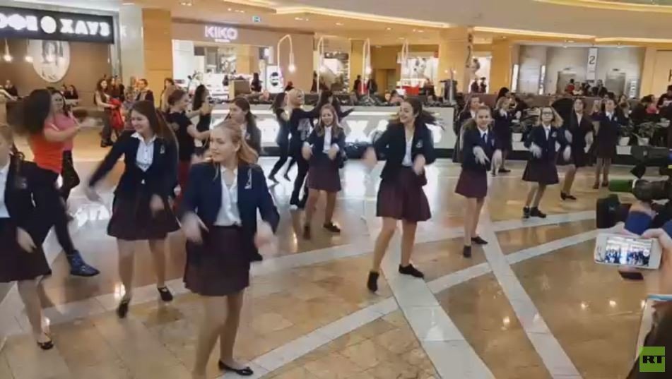 فاجأت مجموعة من الفتيات من أعمار مختلفة زوار أحد المراكز التجارية في موسكو بعرض رقص جماعي من النمط المعروف بفلاش موب على ألحان الموسيقى الهندية والروسية.