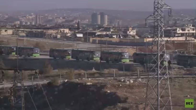 تواصلت عملية إجلاء المسلحين وعائلاتهم من أحياء حلب الشرقية حيث خرجت فجر اليوم دفعة ثالثة منهم عبر معبر الراموسة.