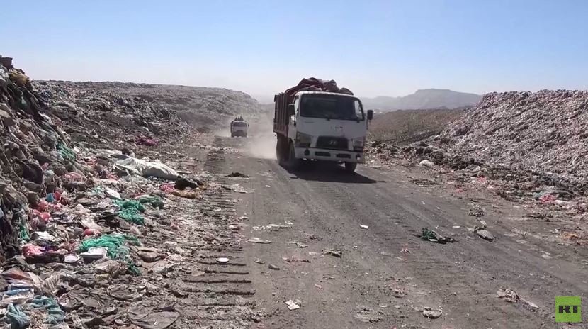 في صنعاء بات مكب النفايات يهدد بكارثة بيئية بعد أن أصبح عاجزا عن التخلص من المخلفات السامة والخطرة نتيجة استهداف المصنع الوحيد المخصص لإحراقها بغارات جوية من مقاتلات التخالف العربي