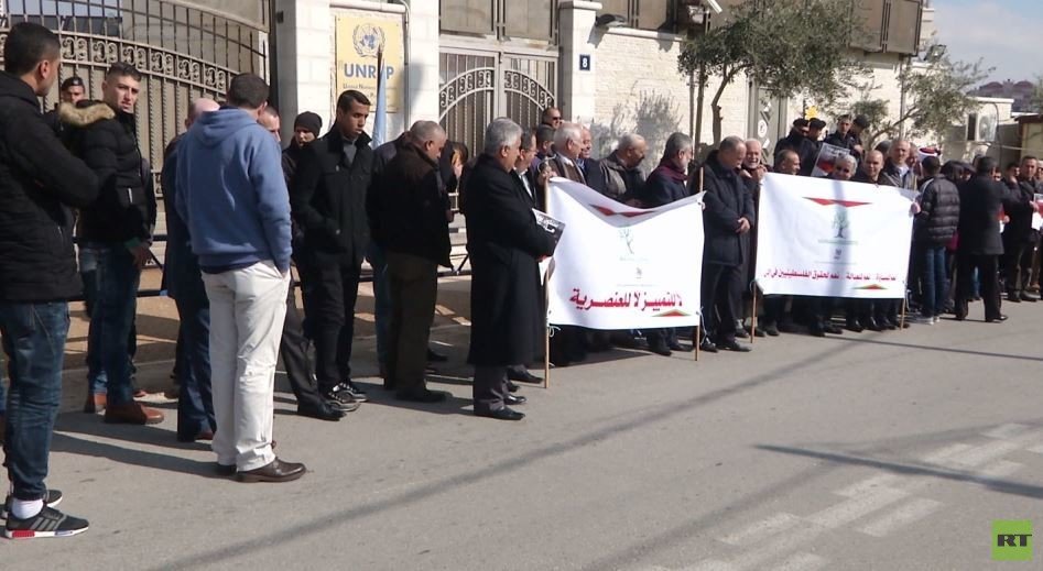 نظم فلسطينيون وقفة احتجاجية أمام مقر الأمم المتحدة في مدينة رام الله تضامنا مع القرى والبلدات العربية المهددة بالهدم والتهجير داخل إسرائيل