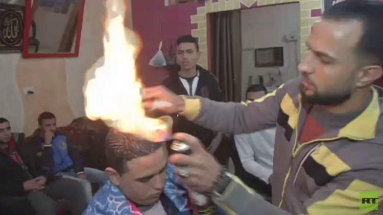 استخدام النار.. لحلاقة وتصفيف الشعر بغزة