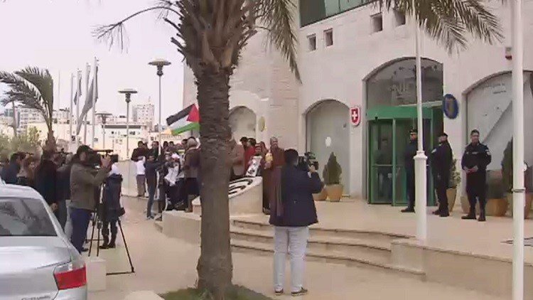 نظمت القوى الوطنية والاسلامية في رام الله وقفة احتجاجية أمام الممثلية السويسرية احتجاجا على تصديق البرلمان السويسري على قرار يعتبر فيه، حركة مقاطعة إسرائيل، بي دي إس، حركة عنصرية