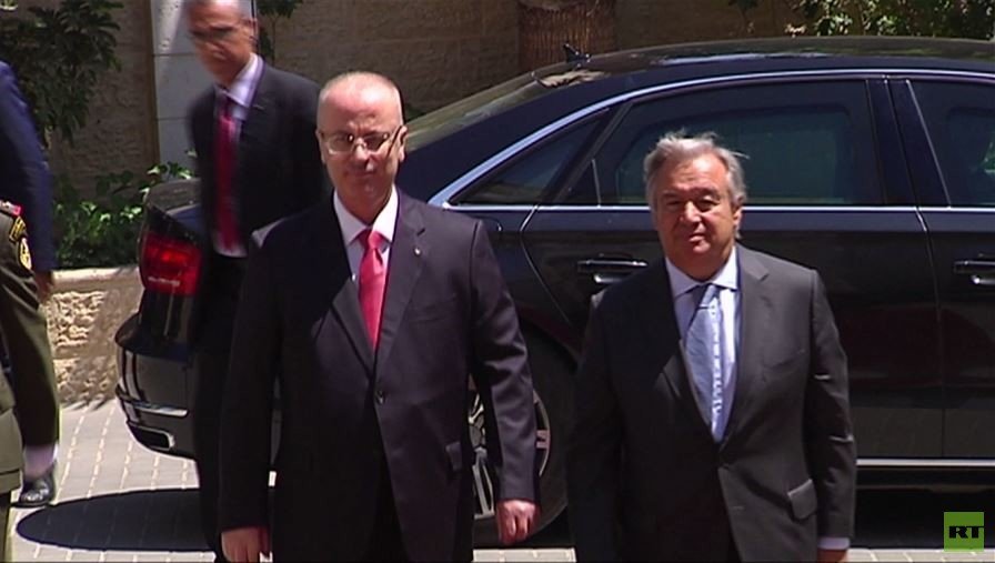 بحث الأمين العام للأمم المتحدة أنطونيو غوتيريش في أول زيارة له إلى رام الله خلال لقائه مع رئيس الوزراء الفلسطيني رامي الحمدلله سبل إعادة إحياء عملية السلام.