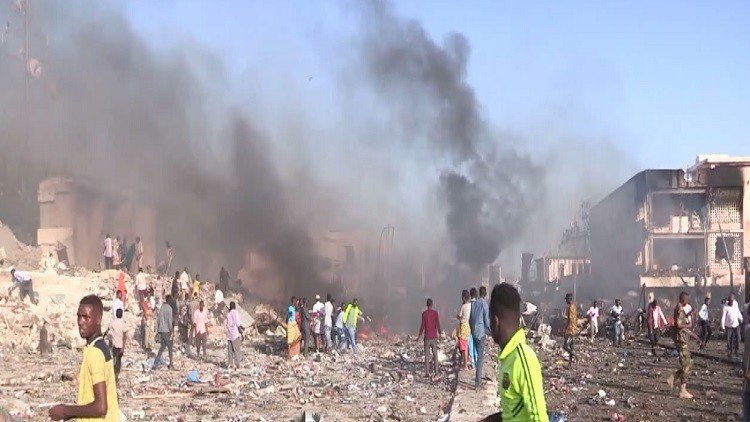 أودى انفجار سيارتين مفخختين بحياة عشرات الأشخاص وتسبب بسقوط جرحى في منطقتين وسط العاصمة الصومالية مقديشو، في وقت لم تتبن فيه أي جهة مسؤوليتها عن الهجومين.