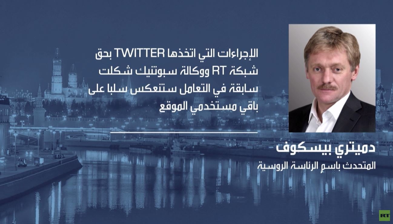 أكد المتحدث باسم الرئاسة الروسية دميتري بيسكوف أن موقع "تويتر" للتواصل الاجتماعي أصبح ضحية أحكام مسبقة تجاه وسائل الإعلام الروسية.