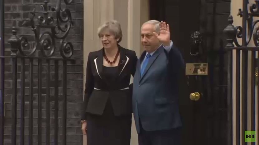 جاء ذلك خلال اجتماع نتنياهو مع نظيرته البريطانية تيريزا ماي في لندن بمناسبة الذكرى المئوية لوعد بلفور. هذا واعتبرت أوساط سياسية وأهلية بريطانية الاحتفال بهذه الذكرى أمرا مأساويا.