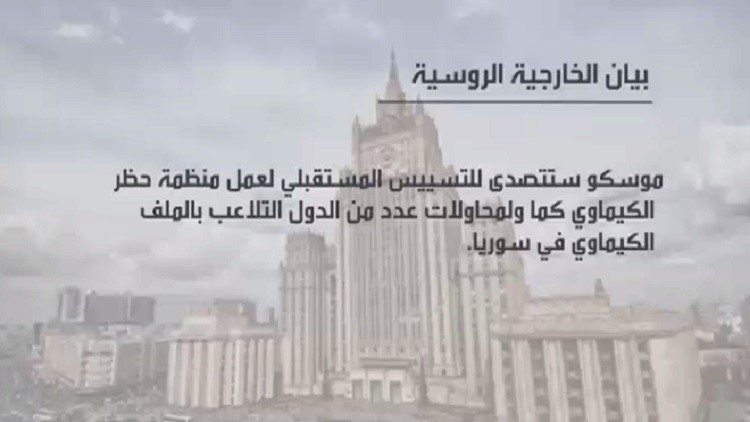 أكدت الخارجية الروسية في بيان لها مواصلة موسكو التصدي لتسييس آلية التحقيق المشتركة بشأن الكيماوي في سوريا، ولأي محاولات للتلاعب بهذا الملف قد تتخذها بعض الدول.