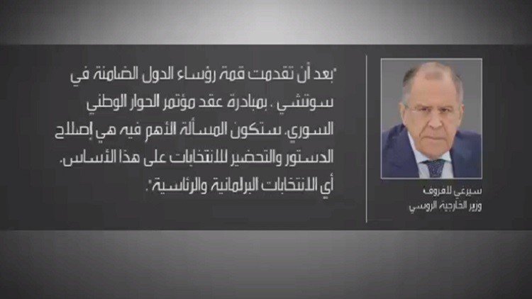 أكد وزير الخارجية الروسي سيرغي لافروف، خلال حوار مع انترفاكس، أن أهم المسائل في مؤتمر سوتشي بشأن سوريا تتمثل بإجراء إصلاحات دستورية، والتحضير لانتخابات برلمانية ورئاسية.