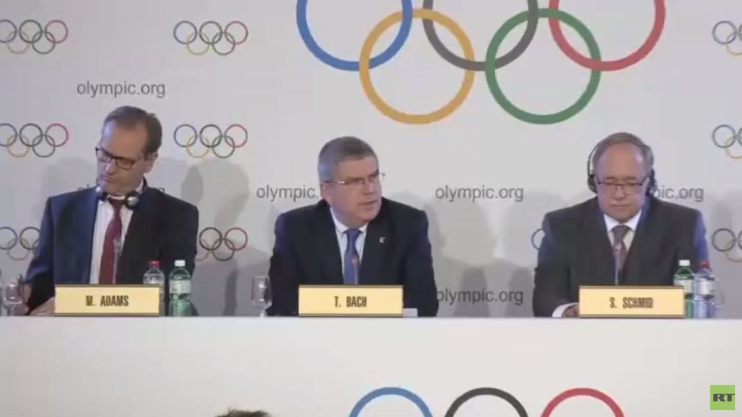 وأعلن رئيس اللجنة الأولمبية الدولية توماس باخ في مؤتمر صحفي، تعليق عضوية اللجنة الأولمبية الروسية. بينما وصف رئيس اللجنة الأولمبية الروسية ألكسندر جوكوف القرار بالمتناقض، وأنه يمثل إهانة للرياضيين الروس.
