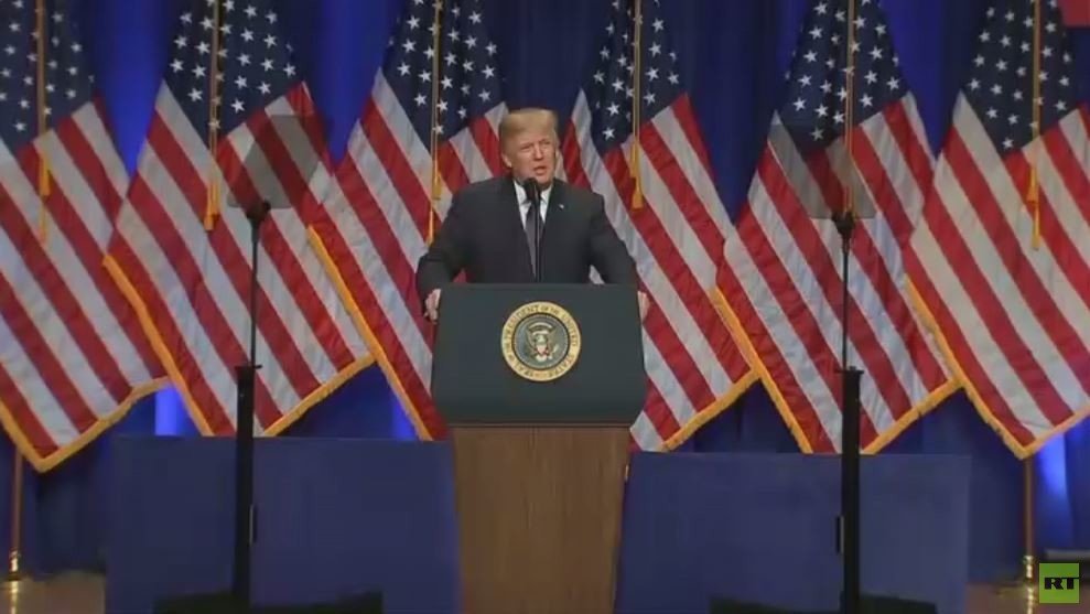 أكد الرئيس الأمريكي دونالد ترامب في كلمة له كشف خلالها عن استراتيجية الأمن القومي في المرحلة المقبلة، أكد أن روسيا والصين تسعيان لتحدي التأثير الأمريكي.
