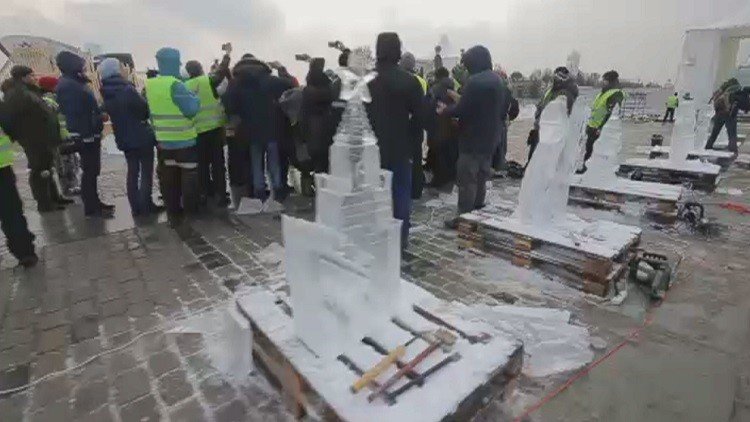 أقيمت في ساحة النصر بموسكو منافسة في النحت على الجليد بين نجوم وفنانين روس، ضمن فعاليات مهرجان موسكو الجليدي، بهدف إثارة الروح الابداعية للنحاتين المشاركين.