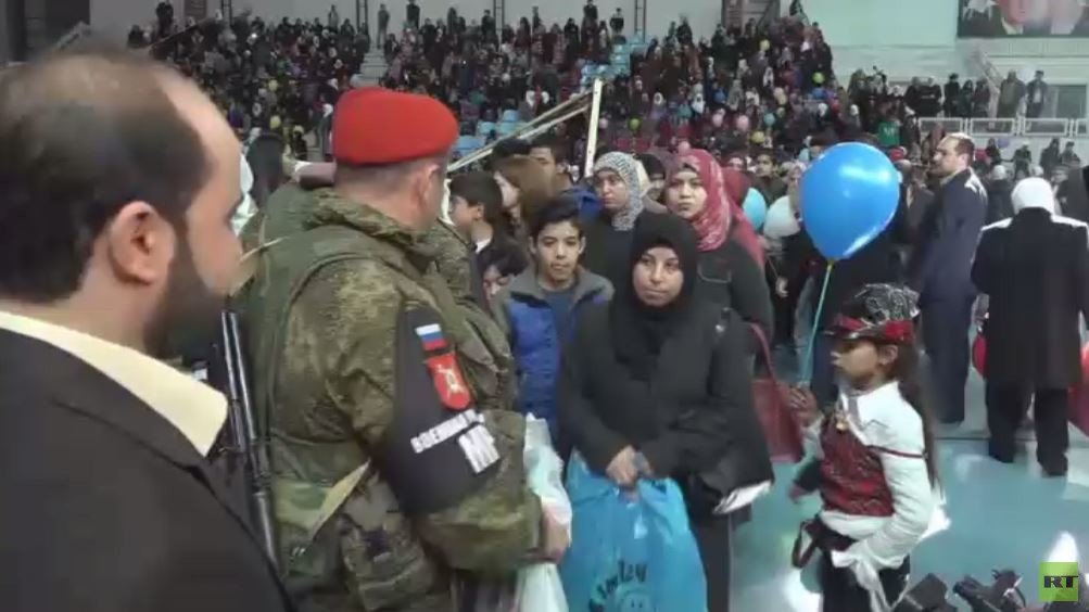 أقيمت احتفالية في دمشق وزعت فيها جمهورية إنغوشيا الروسية مساعدات إنسانية على أطفال سوريين فقدوا ذويهم خلال سنوات الحرب في سوريا.