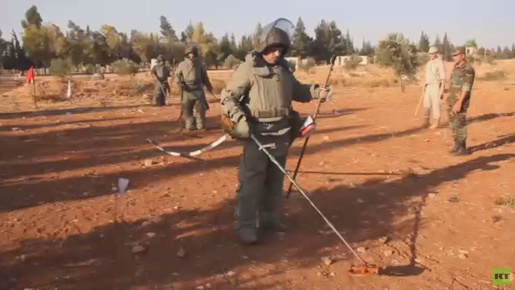 ويقوم الخبراء الروس، ومنهم المقدم الكسندر أساتشي، بالعمل على كشف الألغام وتفكيكها وذلك من أجل تأمين عودة الحياة إلى هذا البلد الذي أثقل بويلات الإرهاب.