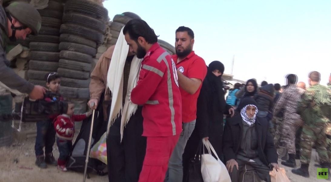 شهد معبر مخيم الوافدين السوري خلال ساعات الهدنة خروج عشرات المدنيين من الغوطة الشرقية.