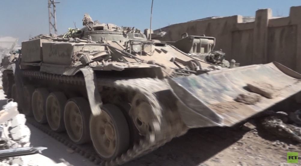 أعلن الجيش السوري عثوره على ورش استخدمها مسلحو الغوطة الشرقية لتصنيع أسلحة كيماوية في منطقة المزارع بين الشيفونية ودوما وذلك خلال عمليات تمشيط هناك.