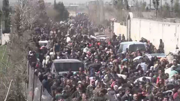مازال معبر حمورية في الغوطة الشرقية يشهد توافد الآلاف من المدنيين من داخل بلدات ومدن الغوطة الشرقية.