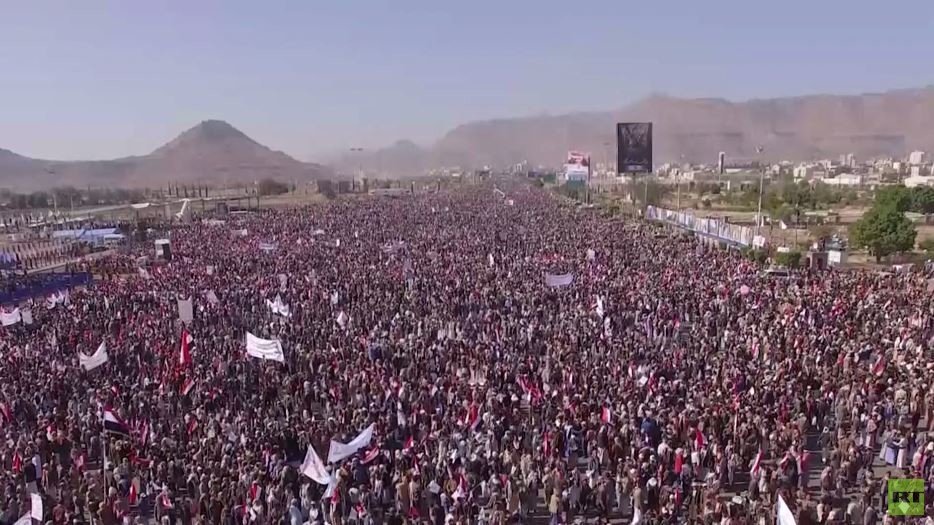 احتشد عشرات آلاف اليمنيين في ميدان السبعين بالعاصمة صنعاء بمناسبة الذكرى الثالثة لانطلاق حرب التحالف العربي في بلادهم..