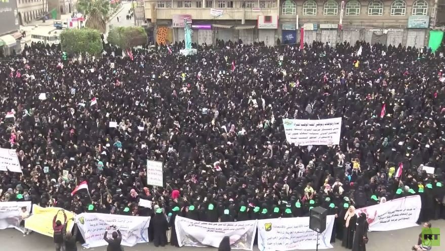 آلاف اليمنيات يتظاهرن في صنعاء بعد حادثة اغتصاب أحد جنـود التحالف فتاة يمنية