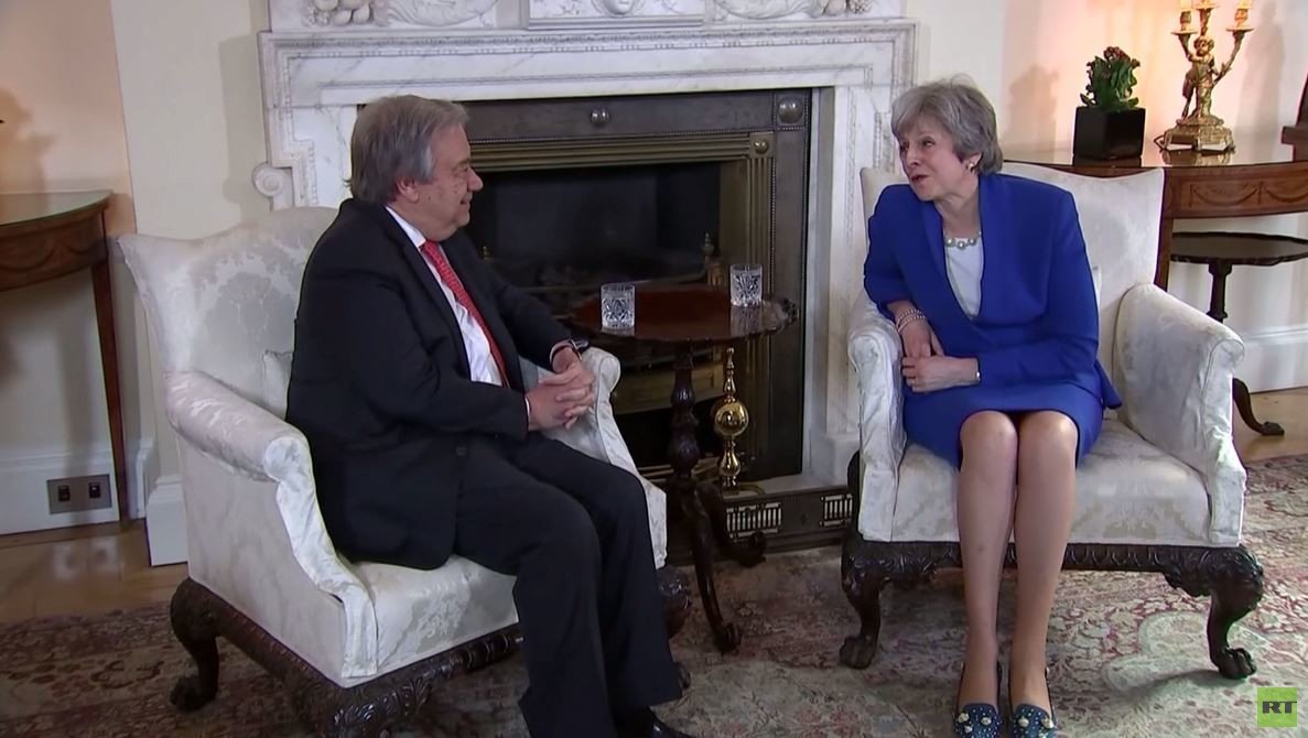 وفي اجتماع مع رئيسة الوزراء البريطانية تيريزا ماي دعا غوتيريش الأطراف الدولية وعلى رأسها الولايات المتحدة إلى الالتزام بالاتفاق.