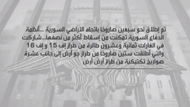 أعلنت وزارة الدفاع الروسية أن ثمان وعشرين طائرة إسرائيلية أطلقت ستين صاروخا نحو سوريا، استهدفت بها مواقع للقوات الإيرانية ومنظومات دفاع جوي سورية في دمشق وجنوب البلاد.