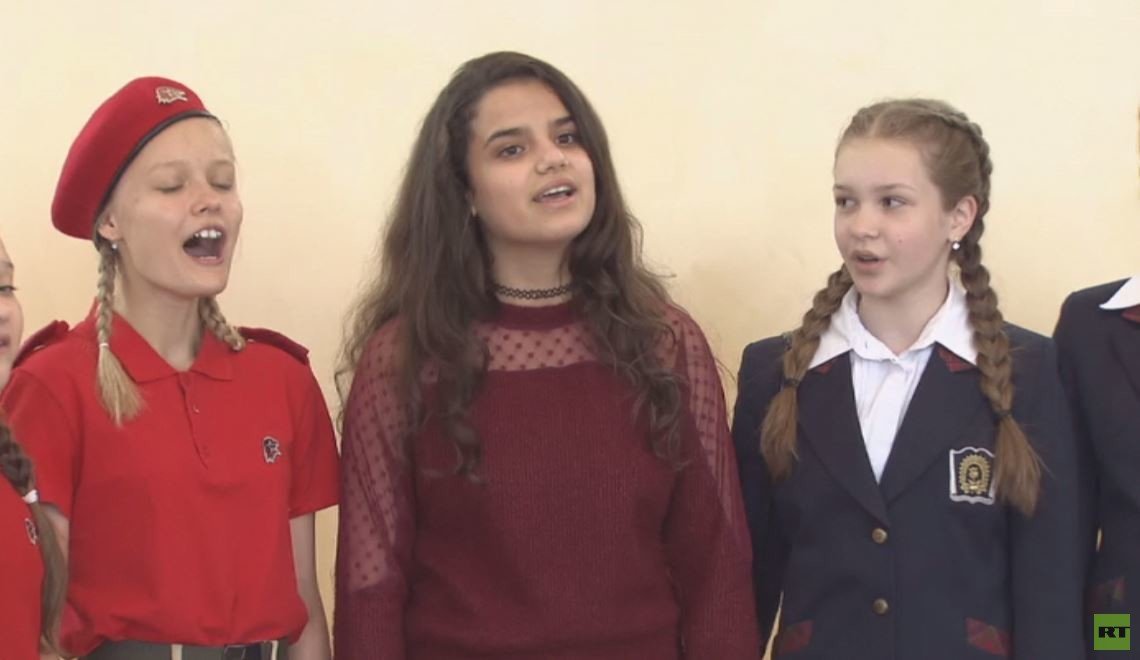 احتفل الأطفالُ الروس بقدومِ الفتاة السورية غزال غانم ، تلك الفتاة التي أدت أغنيةَ كاتيوشا الروسية كشكرٍ للجنودِ الروس الذين قدّموا مساعداتٍ إنسانيةً في قريتها...